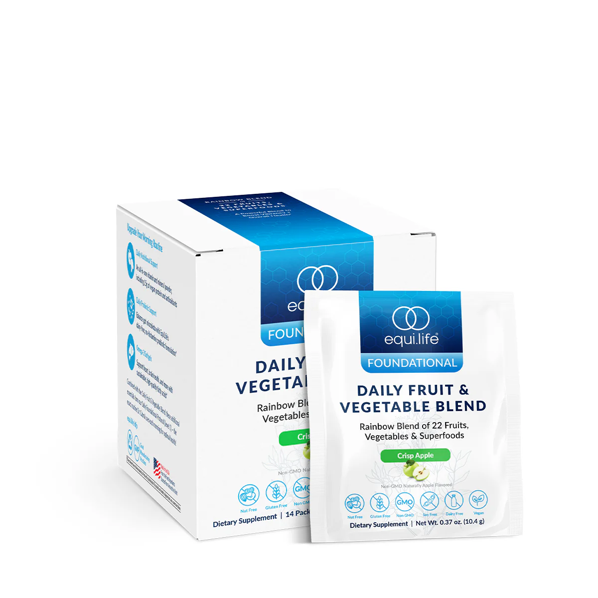 You probably know by now that you should be eating the recommended 7-9 servings of fruits and vegetables every day. The problem is, even if you eat the recommended servings on a daily basis, you're probably not getting the wide variety of colorful vegetables your body needs. The EquiLife Daily Fruit & Vegetable Blend is the simple way to ensure you get the benefits of 22 fruits and vegetables, plus antioxidants and rare superfoods that support optimal health.